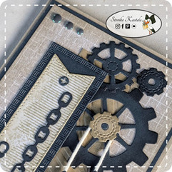 Dans ce projet, j’ai craqué pour le lot Gears & Texture, un indispensable pour réaliser facilement des cartes masculines ou apporter une touche mécanique à des créations plus florales. Ce lot, composé uniquement de tampons et de découpes, permet de jouer avec les fonds, les motifs et les textures. Les engrenages, chaînes et autres petits éléments donnent immédiatement du caractère à vos cartes.